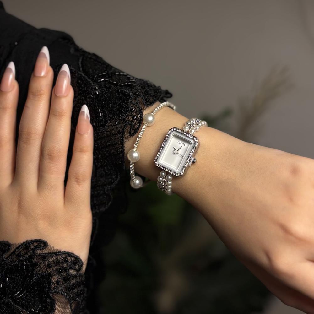 إطارها المرصع بالكريستال اللامع وسوارها الفضي الأنيق يعطيها مظهر ملكي يخطف القلوب، وتناسب كل إطلالة راقية سواء في المناسبات أو الاستخدام اليومي.